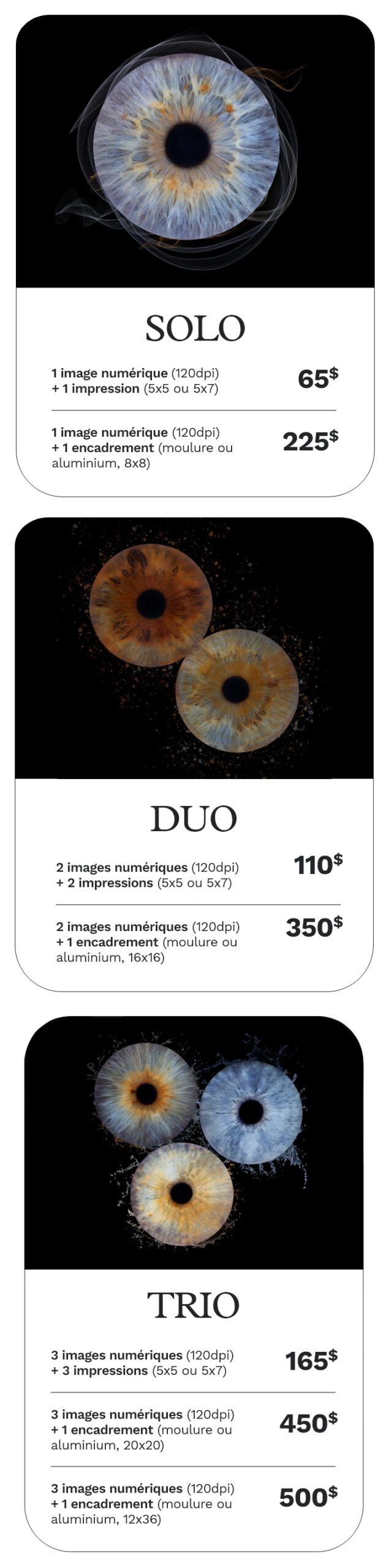 Oui. Nous pouvons assembler jusqu’à 7 iris sur une seule création, comme présenté dans notre galerie.