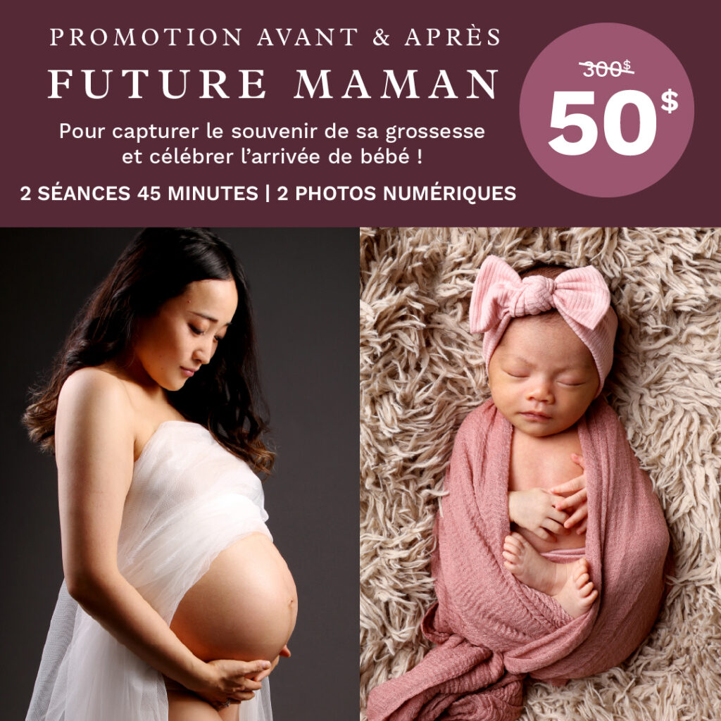 *Valide uniquement sur les services Magenta Photo en studio. Réservé exclusivement pour les séances de maternité et nouveau-né. Non applicable sur les portraits d’affaires ou sur tout autre achat. Vous avez jusqu’au 28 février 2026 pour réserver, et jusqu’au 31 juillet 2026 pour compléter vos séances. Dans le cadre de notre offre Avant/Après maternité, la séance “après” doit avoir lieu dans les 3 mois suivant la naissance de votre bébé. Passé ce délai, l’offre ne sera plus valide et la séance devra être réservée séparément selon nos tarifs réguliers. Limite d’une offre promotionnelle par famille, par séance, par année. Ne peut être jumelée à aucune autre offre.